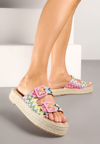 Różowe Klapki na Grubej Plecionej Podeszwie z Geometrycznym Wzorem Tyssedi