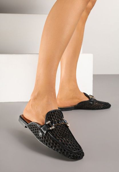 Czarne Siateczkowe Klapki Typu Mule z Klamrą i Cyrkoniami Nimithara