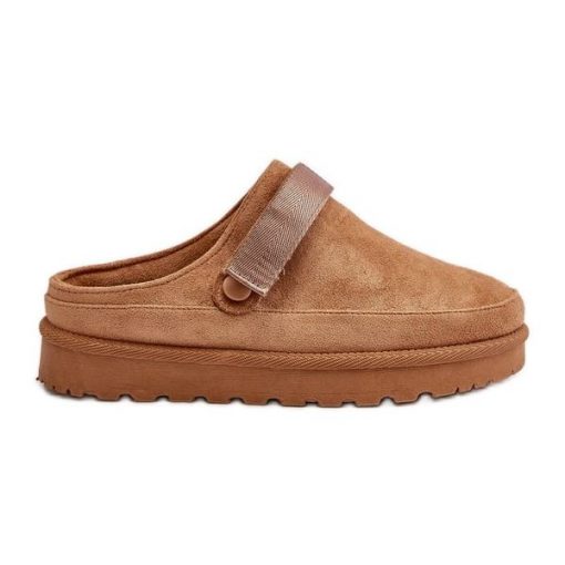Damskie Klapki Ocieplane Futerkiem Na Platformie Camel Azida brązowe