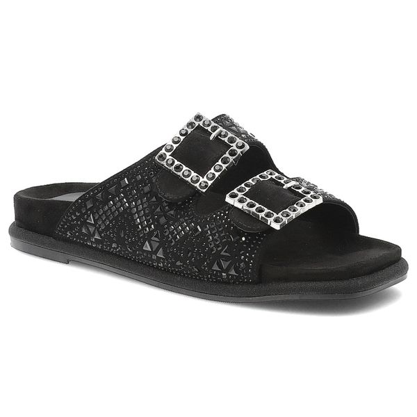 Czarne Klapki Laura Vita Eleganckie Błyszczące Obuwie Damskie