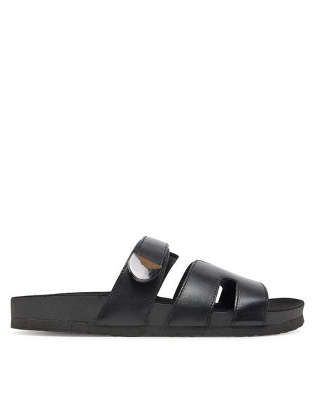 Czarne Klapki Typu Chodaki z Wkładką z Imitacji Skóry Ozdobione Nitami na Słupku Obivena