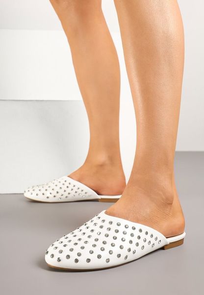 Białe Klapki Mule z Cholewką Zdobioną Cyrkoniami Sarritia