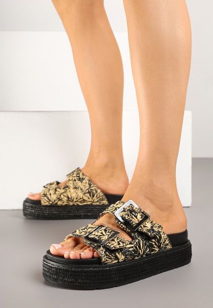 Czarne Klapki na Platformie z Plecionką Klamrami Ronarisa