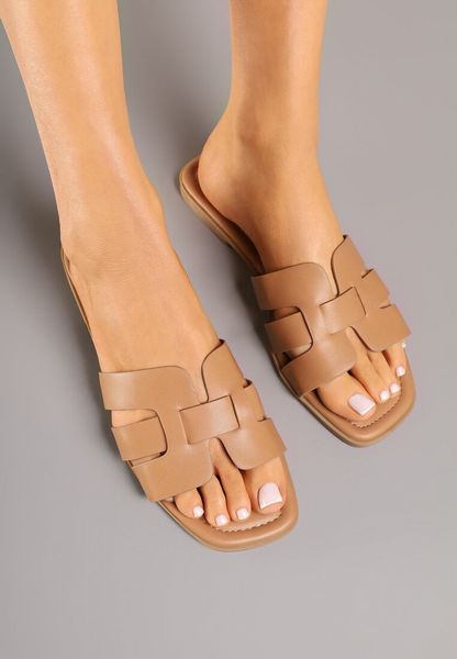 Brązowe Klapki z Ozdobnymi Paskami Dovina