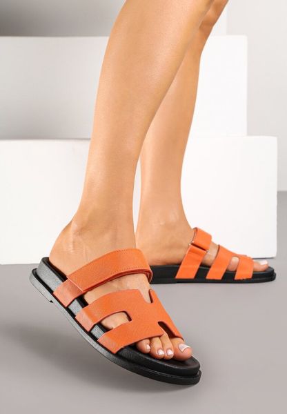 Pomarańczowe Klapki z Geometrycznymi Wycięciami w Cholewce Zapinane na Rzep Salaverra