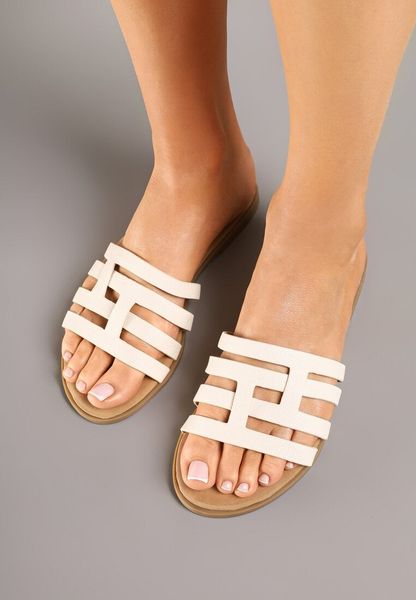 Beżowe Klapki z Przeplatanymi Paskami Selvisa