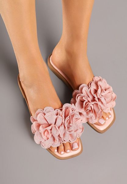 Różowe Klapki Ozdobione Aplikacją 3D Fevalene