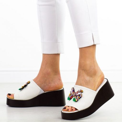 Białe klapki damskie na koturnie M.Daszyński 24130-1