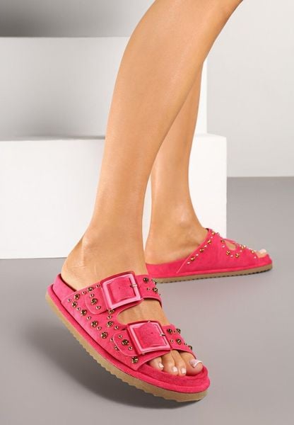 Fuksjowe Klapki z Klamrami i Ozdobnymi Aplikacjami Ellinae