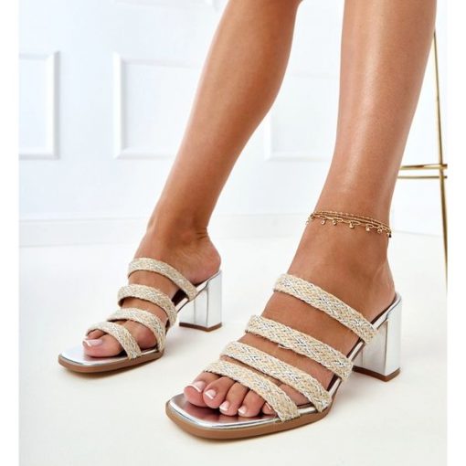 Srebrne klapki na słupku z plecionymi paskami Sarile srebrny