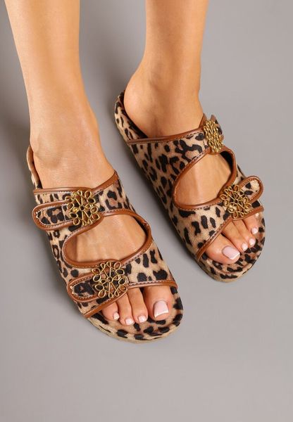 Panterkowe Klapki Vices z Metaliczną Ozdobą i Dwoma Paskami Maithiana