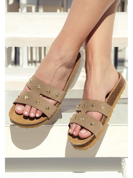 – zapięcie: bez- noski: otwarte – detale: ozdobne nity- skórzana wkładka: ergonomicznie formowana- podeszwa: antypoślizgowa