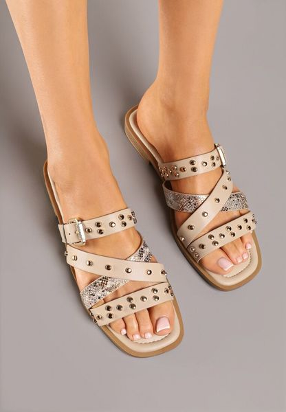 Ciemnobeżowe Klapki z Nitami i Klamrą Ronaliae