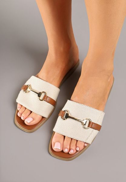 Brązowo-Beżowe Klapki z Metaliczną Klamrą Ridiselle