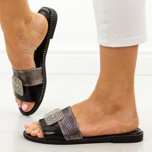 Czarno-srebrne klapki damskie Jezzi 24148-3