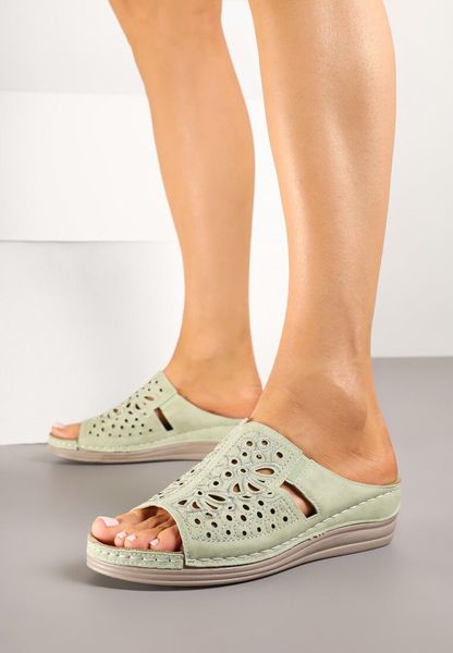 Zielone Klapki na Koturnie z Ażurową Cholewką Sormeira
