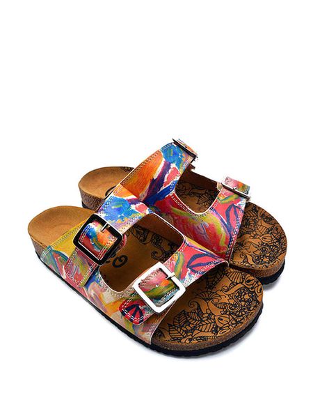 – materiał wierzchni ze skóry syntetycznej- zapięcie: sprzączka- noski: otwarte- powierzchnia: wzorzysta- wkładka: ergonomicznie formowana- podeszwa: antypoślizgowa