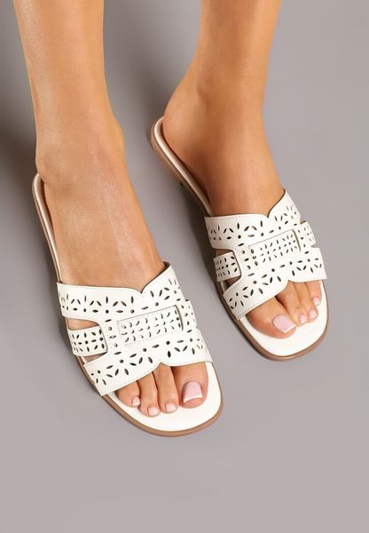Białe Klapki Ozdobione Ażurowym Wzorem Lavialira