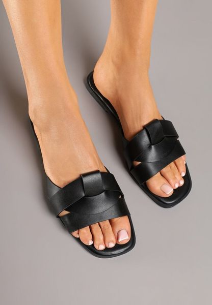 Czarne Klapki z Ozdobnie Przeplecionymi Paskami Davianne