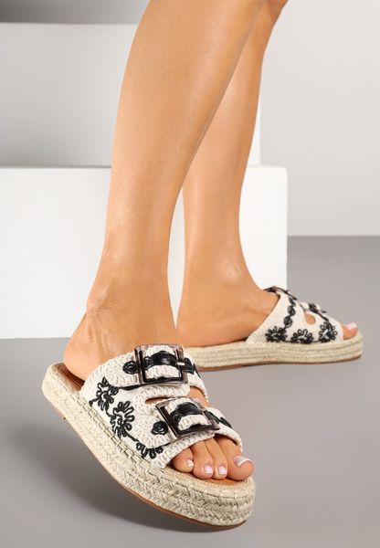 Beżowo-Czarne Klapki Vices z Plecionką i Klamrami Vilsela