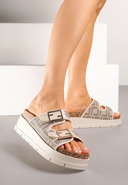 Beżowe Klapki na Grubej Podeszwie z Geometrycznym Wzorem Rinselia