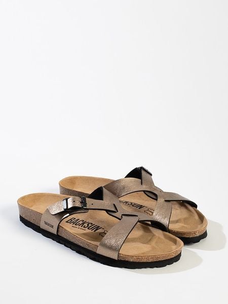 – rodzaj zapięcia: sprzączka- noski: otwarte- powierzchnia: metalicznie błyszcząca- skórzana wkładka: ergonomicznie formowana- podeszwa: antypoślizgowa