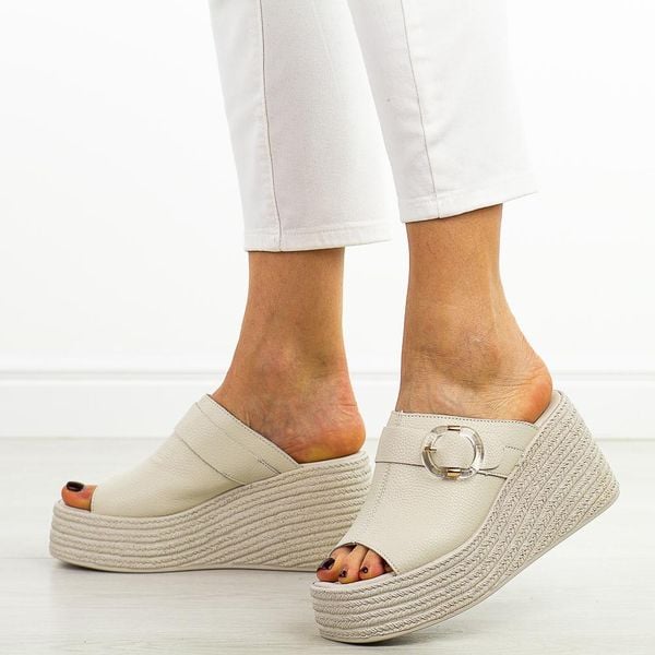 Beżowe skórzane klapki damskie na platformie T.Sokolski 253