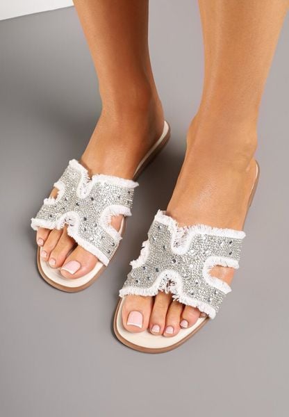 Białe Klapki Vices z Geometryczną Cyrkoniową Cholewką Melozia