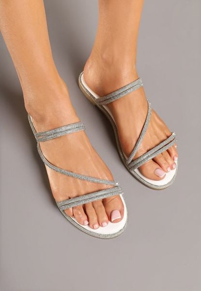 Białe Klapki z Cyrkoniowymi Paskami Jenalitia
