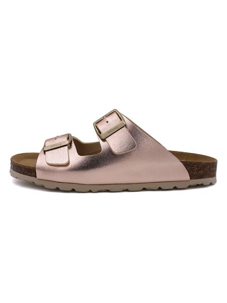 – skórzana wkładka: ergonomicznie formowana- powierzchnia: z metalicznym połyskiem- zapięcie: sprzączka- noski: otwarte- podeszwa: antypoślizgowa