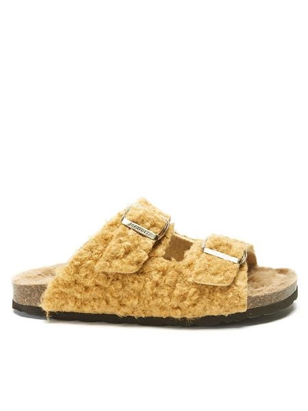 VALENTINO Beżowe klapki damskie z syntetycznego futerka, Rozmiar 40