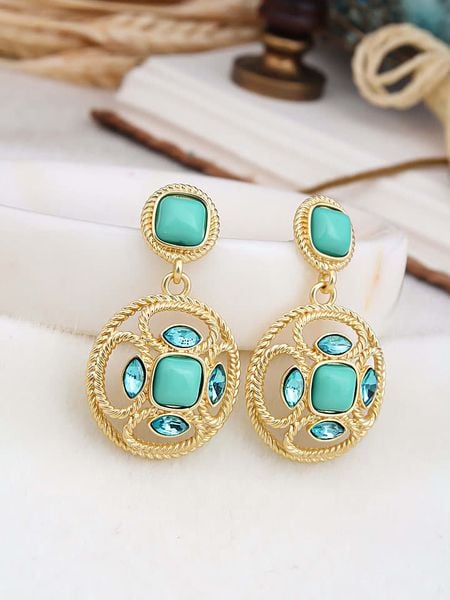 – materiał: mosiądz- powłoka: złoto- zapięcie: pin- rodzaj kamienia: amazonit- kolor kamienia: turkusowy- rodzaj kamienia: cyrkonia- kolor kamienia: turkusowyWskazówka: Zdjęcie produktu w powiększeniu.
