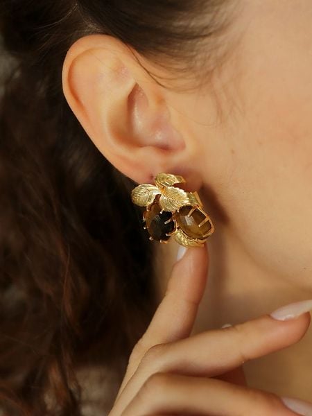 L’Atelier de Gaia Pozłacane kolczyki-wkrętki z tygrysim okiem rozmiar: onesize