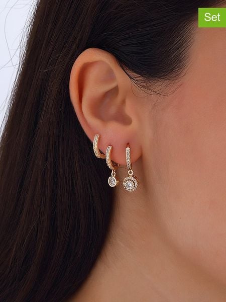 Nakkash Pozłacane kolczyki-kreole (3 szt.) z cyrkoniami rozmiar: onesize