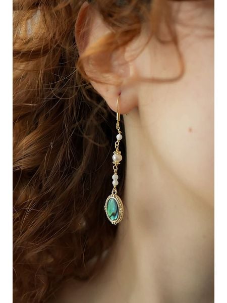 – materiał 1: mosiądz- powłoka: złoto- materiał 2: perły- zapięcie: bigiel- rodzaj kamienia: masa perłowa- kolor kamieni: zielony, niebieskiWskazówka: Zdjęcie produktu w powiększeniu.