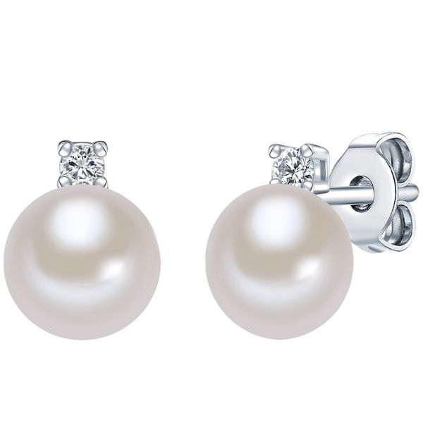 Valero Pearls Kolczyki sztyfty z perłą srebro wysokiej próby Cyrkonia Perła hodowlana słodkowodna srebrny 1 ct Damski