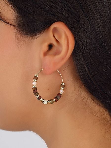Nakkash Pozłacane kolczyki-kreole z kamieniem szlachetnym rozmiar: onesize
