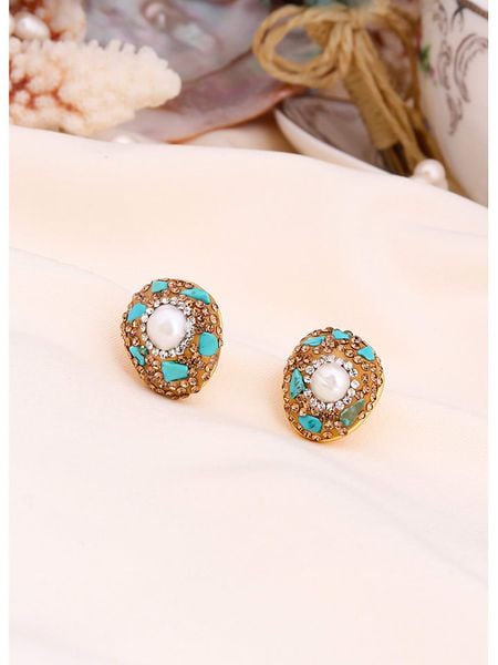– materiał: mosiądz- powłoka: złoto- zapięcie: pin- rodzaj perły: hodowlana- kolor pereł: biały- rodzaj kamienia: turkus- kolor kamienia: turkusowyWskazówka: Zdjęcie produktu w powiększeniu.