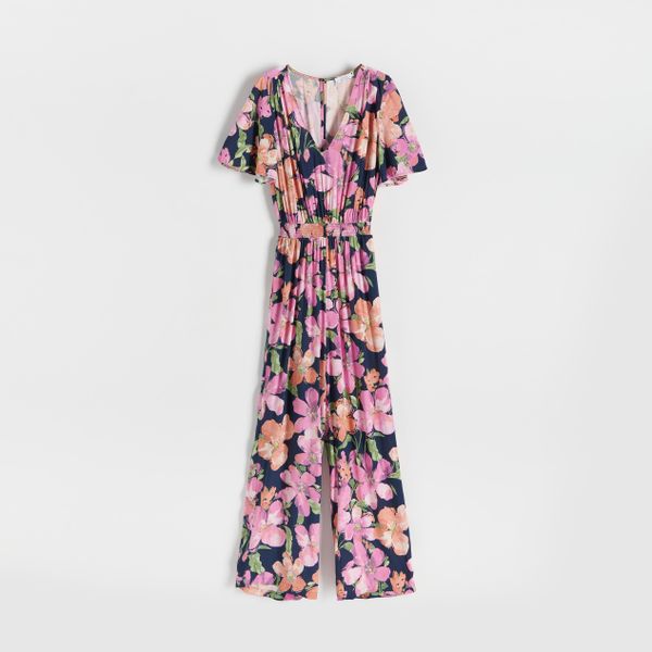 Kombinezon o swobodnym fasonie podkreślającym talię, uszyty z wiskozy.