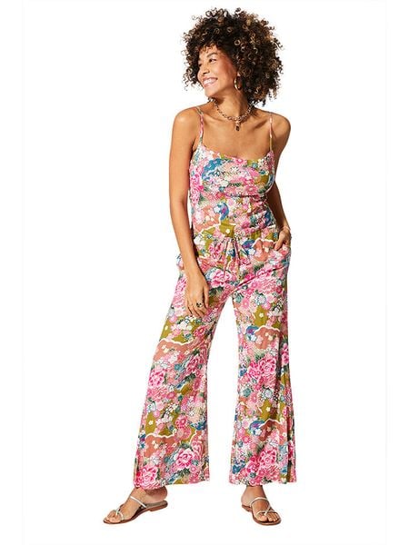 – czysta wiskoza- ramiączka: regulowane- dekolt: okrągły- partia pleców: marszczona- pas: ściągacz tunelowy- kieszenie: wpuszczane- krój nogawek: Wide Leg- krój: taliowany- wzór: kwiatowyUwaga: Na metkach odzieży tej marki znajdują się rozmiary francuskie. Rozmiarówka została przez nas przeliczona. Podane do wyboru warianty rozmiarów odpowiadają standardowym europejskim rozmiarom konfekcji. Prosimy zapoznać się z zamieszczonym objaśnieniem rozmiarów.