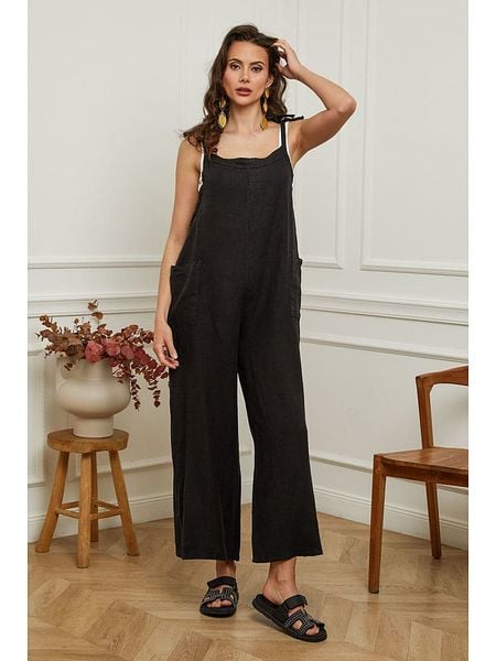 – czysty len- ramiączka: wąskie- dekolt: okrągły- kieszenie: naszyte- krój nogawek: Wide Leg- krój: luźny- look: jednokolorowy