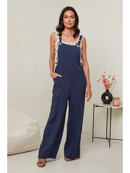 Le Monde du Lin Lniane ogrodniczki w kolorze granatowym rozmiar: 38/40