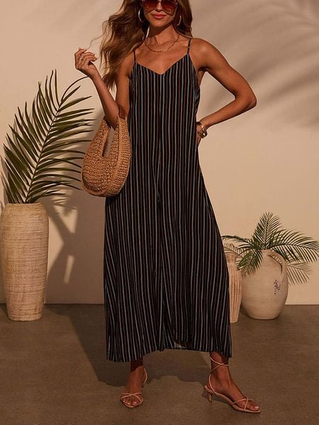 – czysta wiskoza- ramiączka: regulowane- dekolt: V- kieszenie: wpuszczane- długość nogawek: 7/8- krój nogawek: Wide Leg- krój: luźny- wzór: paskiUwaga: Przy wyborze właściwego wariantu zaleca się korzystanie z tabeli rozmiarów.