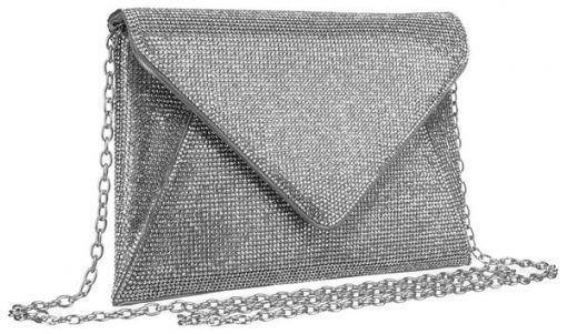Wyjątkowo elegancki design, zdobiony lśniącymi cyrkoniami. Torebka wykonana jest z wysokiej jakości syntetycznego materiału, który gwarantuje trwałość oraz estetyczny wygląd na długie lata. Torebka na srebrnym łańcuszku.