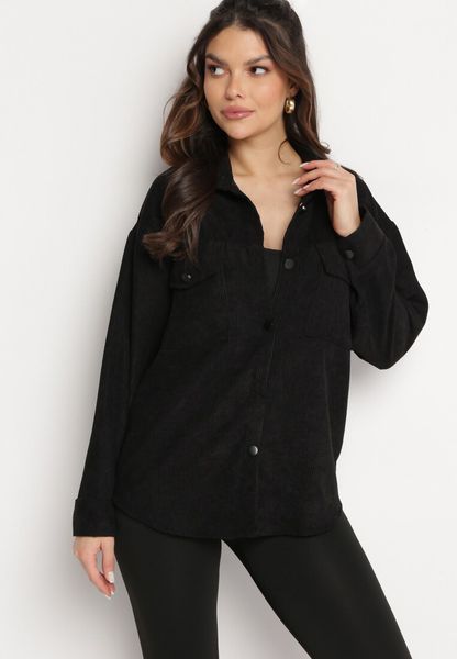 Czarna Koszula Sztruksowa z Kieszeniami Gwenera