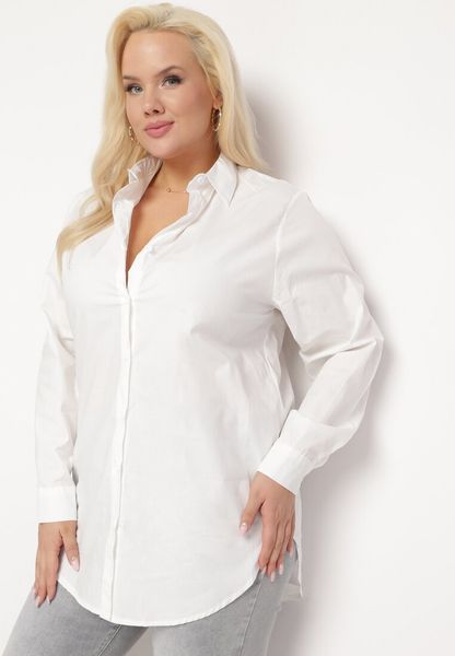 Biała Długa Koszula z Podwijanymi Rękawami i Kołnierzykiem Saturea