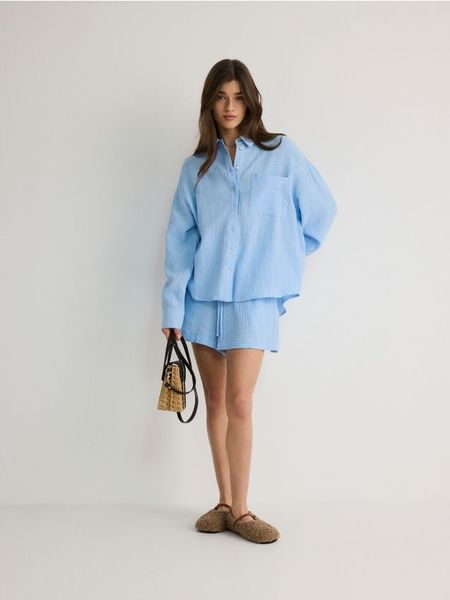 Koszula z bawełnianego muślinu – jasnoniebieski