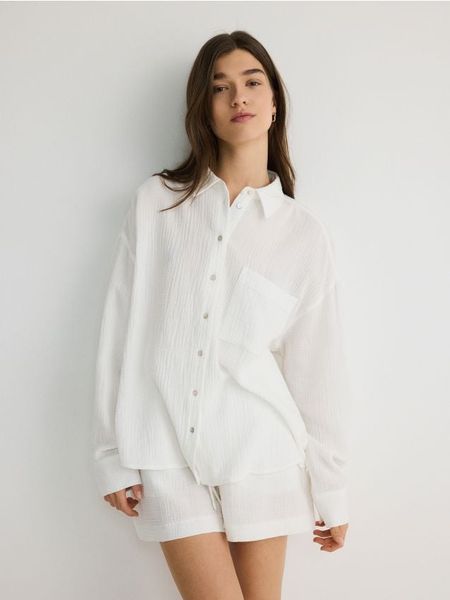 Koszula z bawełnianego muślinu – biały