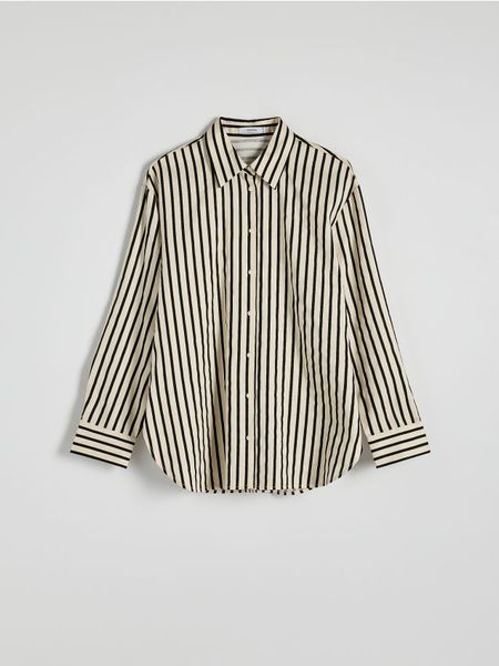 Bawełniana koszula w paski – beżowy