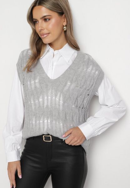 Biała Koszula o Klasycznym Fasonie z Dzianinową Kamizelką Irinellea